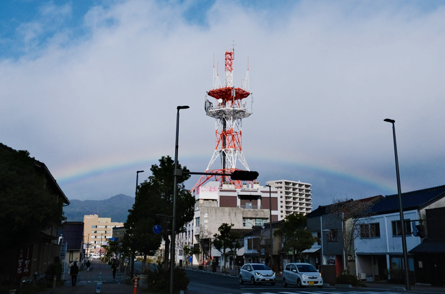 「良かった、良かった。」と安堵して車に向かって歩いていると、雨上がりの空には、大きい虹が架かっていました。